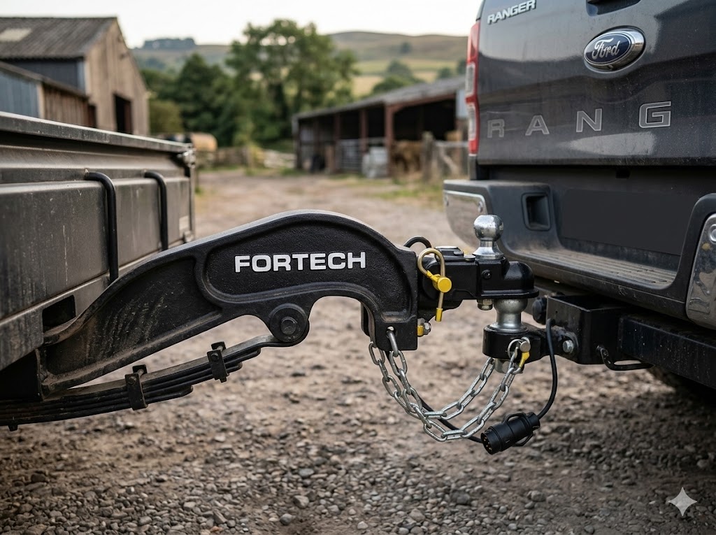 A segurança na estrada começa com uma conexão confiável. O engate de reboque Fortech é fabricado em aço forjado de alta resistência e possui homologação rigorosa para garantir a máxima capacidade de tração. Este modelo apresenta acabamento em preto brilhante e uma trava de segurança amarela vibrante com pino de retenção, que proporciona um travamento visualmente seguro. O logotipo "FORTECH" gravado em relevo no corpo metálico demonstra nosso compromisso com a engenharia de precisão e a segurança do usuário. Equipado com soquete elétrico de 7 pinos e correntes de segurança reforçadas, é a escolha ideal para pick-ups e carretas de todos os portes.